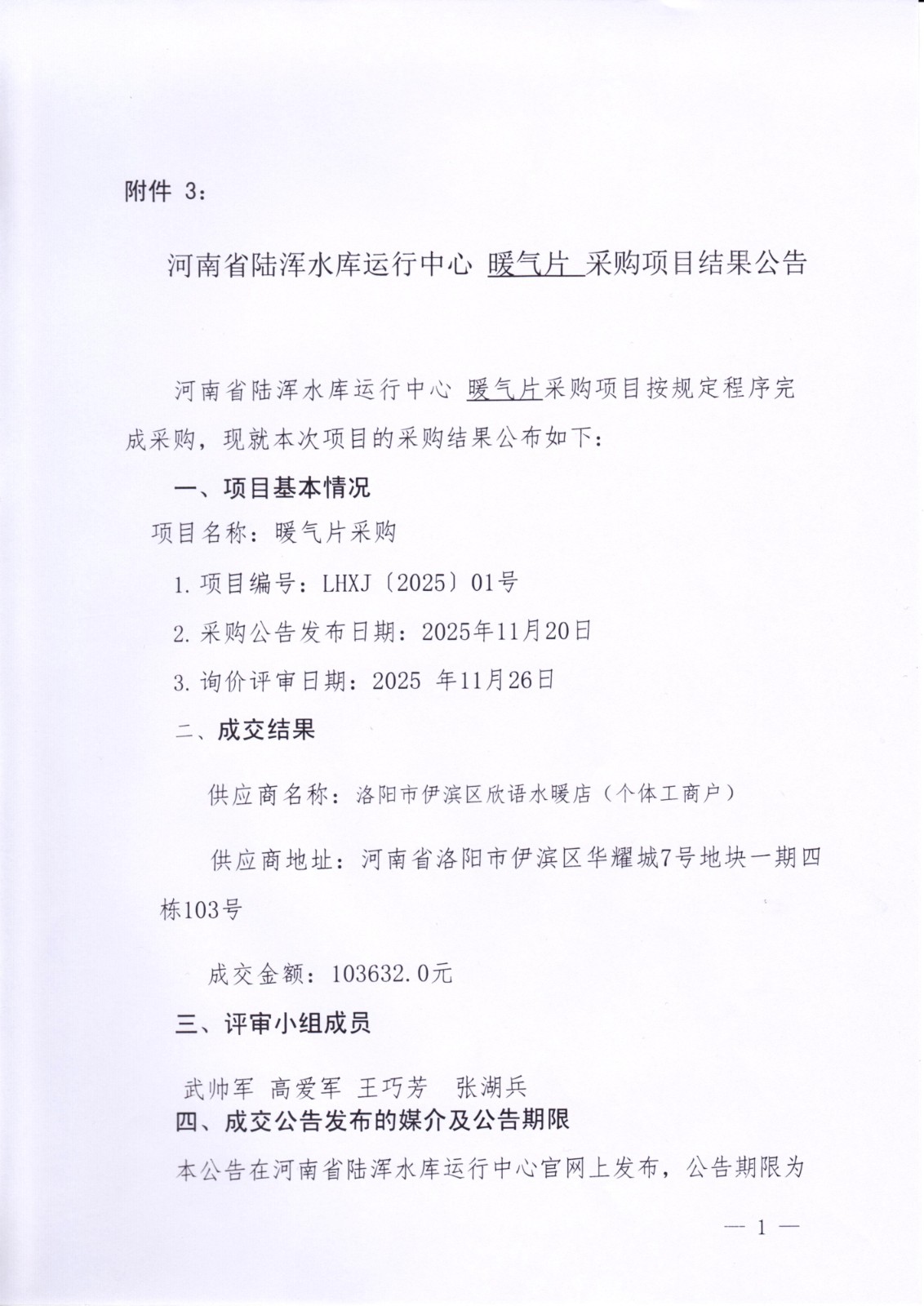 暖气片采购项目结果公告